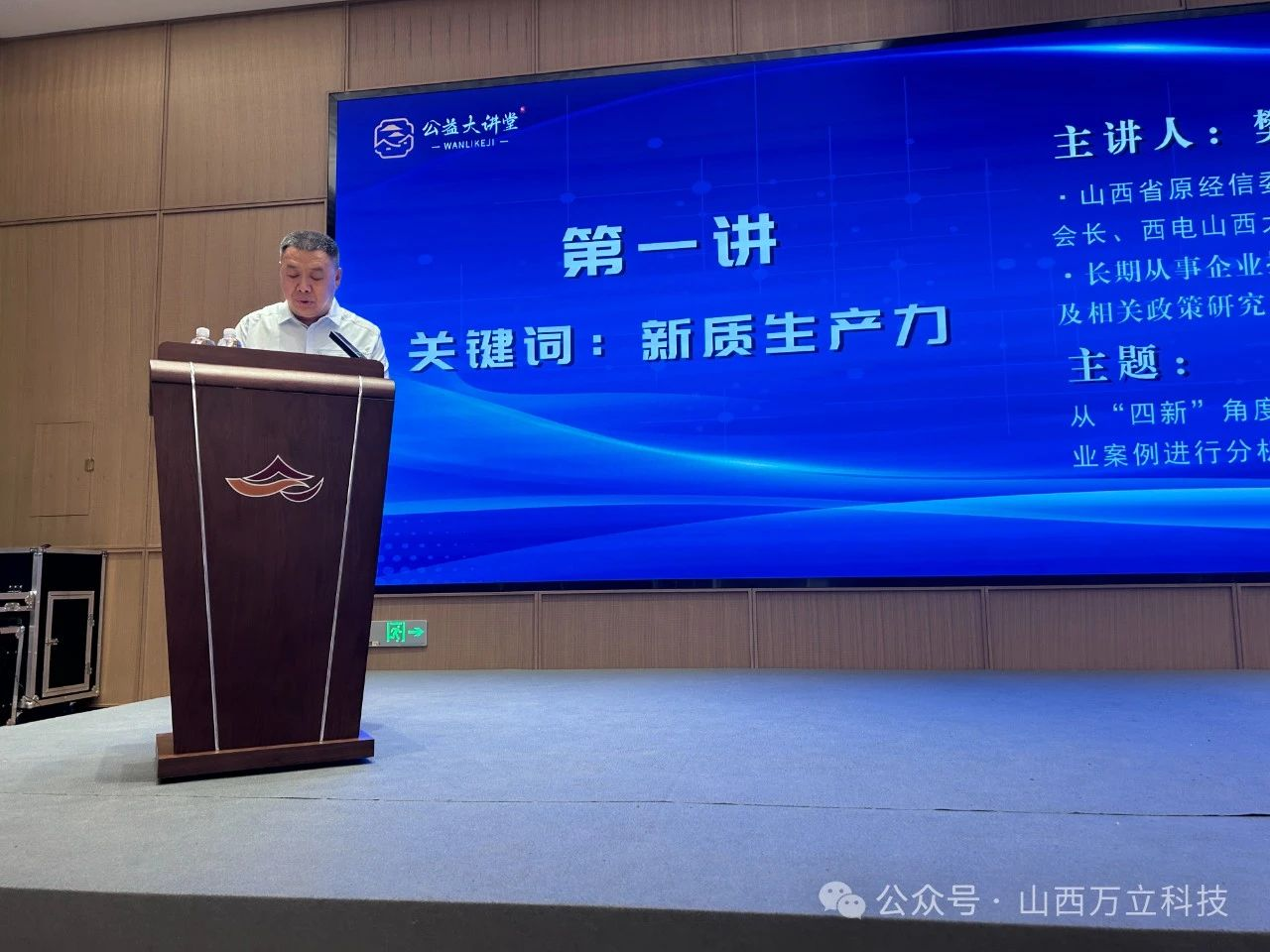 2024年6月19日,山西萬立科技軟件和信息服務(wù)集聚區(qū)園區(qū)服務(wù)中心在山西飯店·柒號(hào)食府三樓多功能廳開展了主題為《從“四新”角度深入剖析“新質(zhì)生產(chǎn)力”的核心要義》的首期公益大講堂活動(dòng),本次講座特邀原山西省原經(jīng)信委副巡視員、山西省環(huán)境保護(hù)產(chǎn)業(yè)協(xié)會(huì)會(huì)長、西電山西大數(shù)據(jù)研究院特聘專家樊文彬先生作為主講嘉賓,為園區(qū)企業(yè)帶來了一場(chǎng)關(guān)于新質(zhì)生產(chǎn)力的精彩授課。